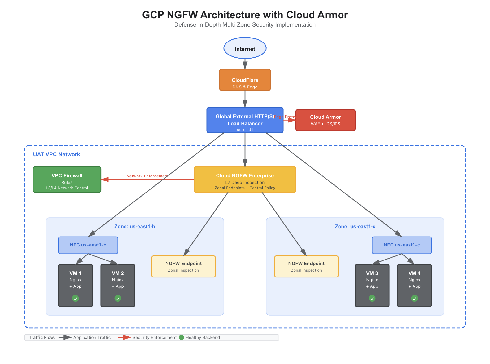 Implementing Defense-in-Depth on GCP: A Practical NGFW + Cloud Armor Architecture (SOC 2 Ready)