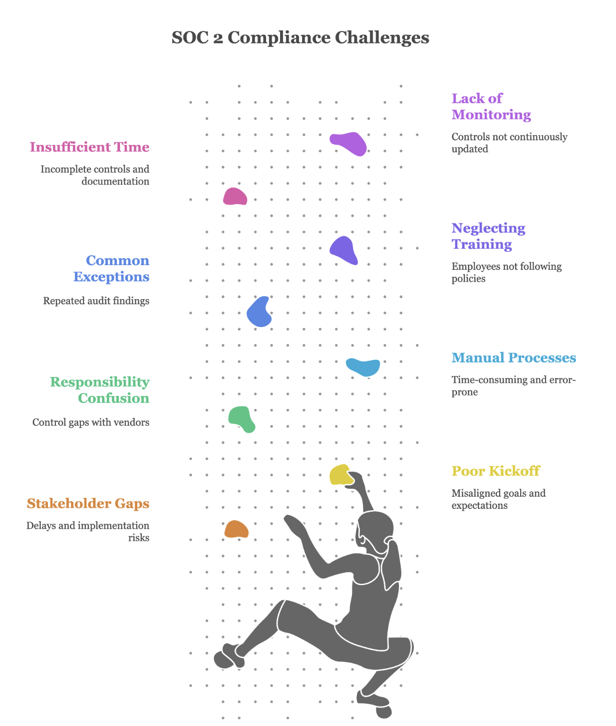 A key best practice in SOC 2 compliance is understanding the most common exceptions organizations encounter during audits. Some of the most common SOC2 exceptions are listed below.